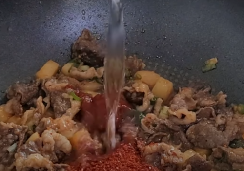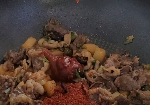 이제 물 2큰술을 넣고 골고루 맛있게 볶아줍니다.