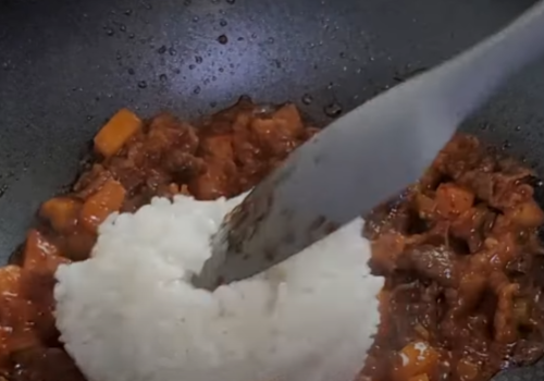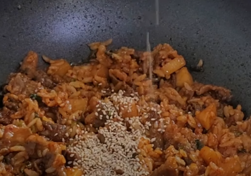 양념이 잘 볶아졌을때쯤 공깃밥 1 공기를 넣고 함께 볶아주세요
