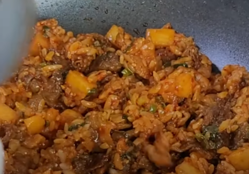오늘은 깍두기 차돌 김치볶음밥을 맛있게 만들어 보았습니다.