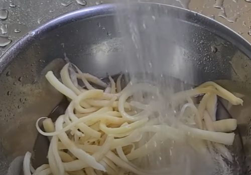20분간 담가둔 도라지는 두어 번 헹궈주세요