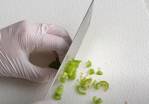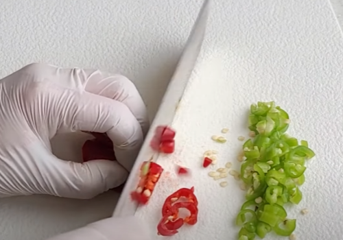 양파 1/4개와 청양고추 1개 홍고추 1개를 썰어주세요