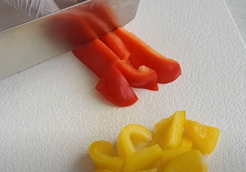 당근은 반달모양으로 피망과 청양고추도 먹기 좋게 잘라주세요.