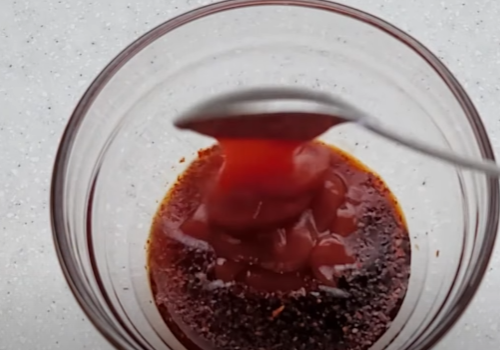 고춧가루 1/2큰술, 케첩 4큰술, 물엿 2큰술을 넣어주세요