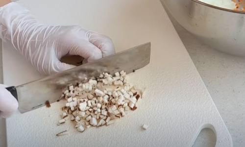 당근 1/2개와 송고버섯 1개도 잘게 잘게 다져주세요
