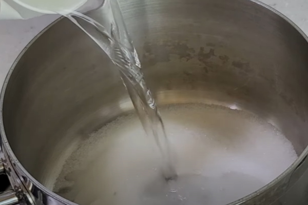 - 거름망을 대고 끓인 물을 넣어주세요.