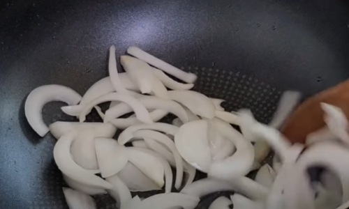 이제 팬에 식용유를 넉넉하게 둘러주고 썰어둔 양파를 볶아주세요