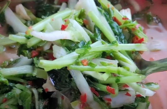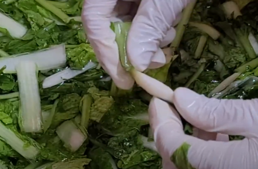 30~40분 후 열무와 얼갈이배추가 잘 절여졌는지 확인한 후에 물에 한번 헹궈주세요