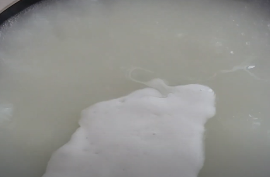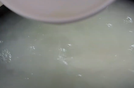 잘 섞어둔 밀가루풀을 끓는 물 3L에 넣고 팔팔 끓인 후 식혀줍니다.