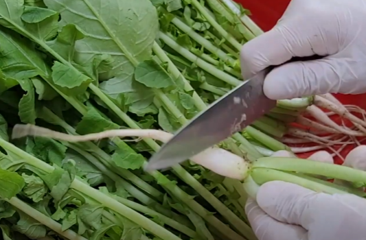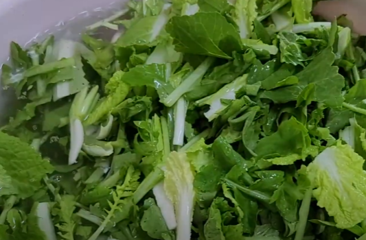 열무와 얼갈이배추를 잘 다듬어 준 뒤 깨끗하게 씻어 줍니다.