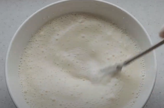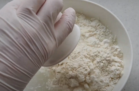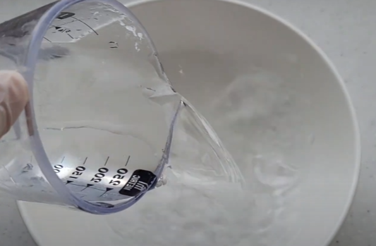 물 500ml에 밀가루 종이컵 한 컵을 넣고 골고루 섞어주세요.