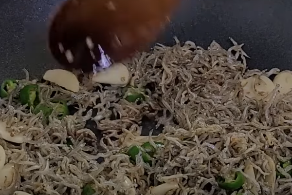 - 중불로 마른 팬에 멸치를 1~2분 볶아줘요