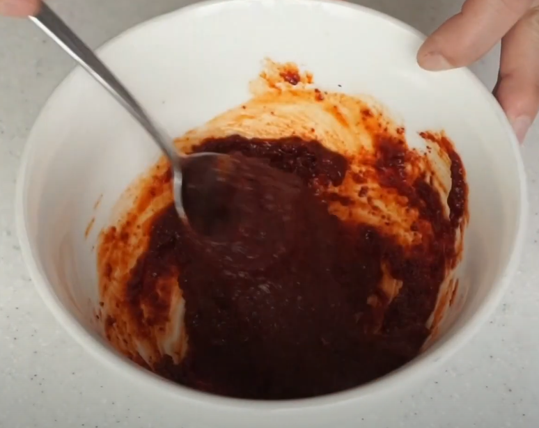 고춧가루 3스푼 고추장 2스푼 설탕 1스푼 진간장 1스푼 물엿 1스푼 이렇게 넣어줬어요.