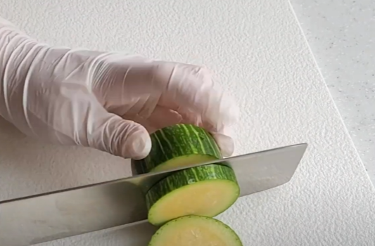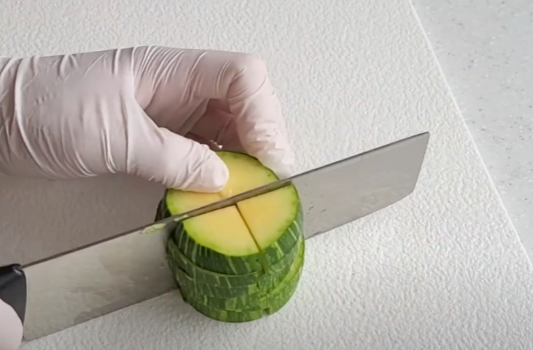 애호박 1/3개도 먹기좋게 썰어줍니다.