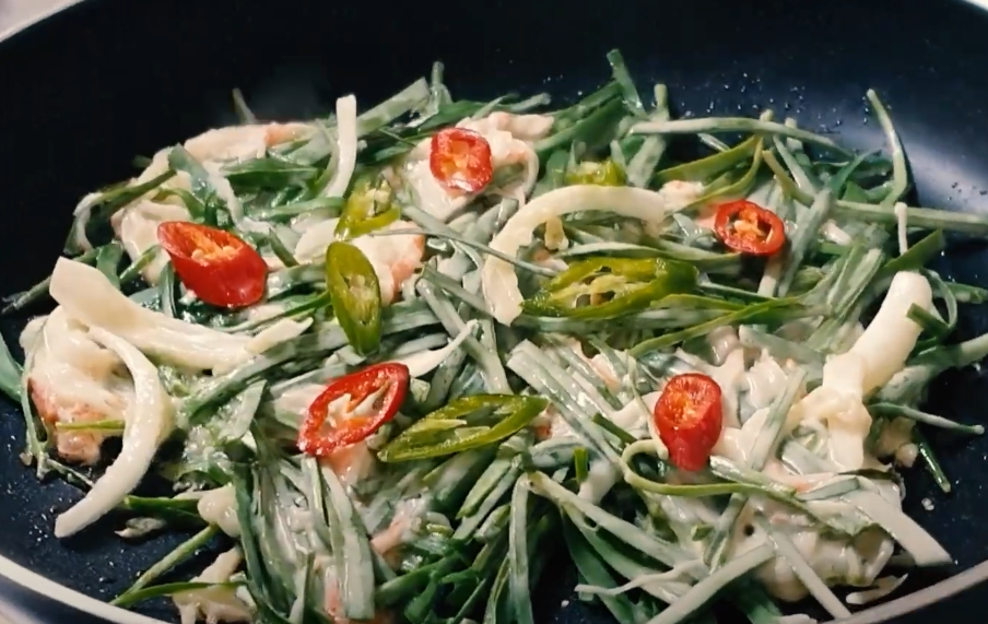 부추와 양파 크래미를 넣고 잘 버무려줍니다.