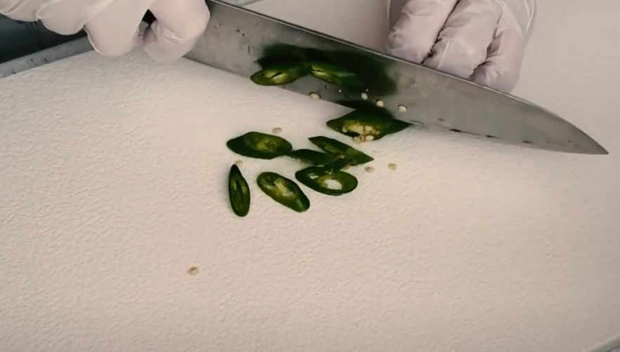 크래미를 꺼내 손으로 잘게 뜯어줘요