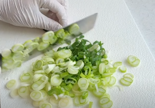 애호박 100g, 양배추 120g, 대파 1대를 썰어주세요.